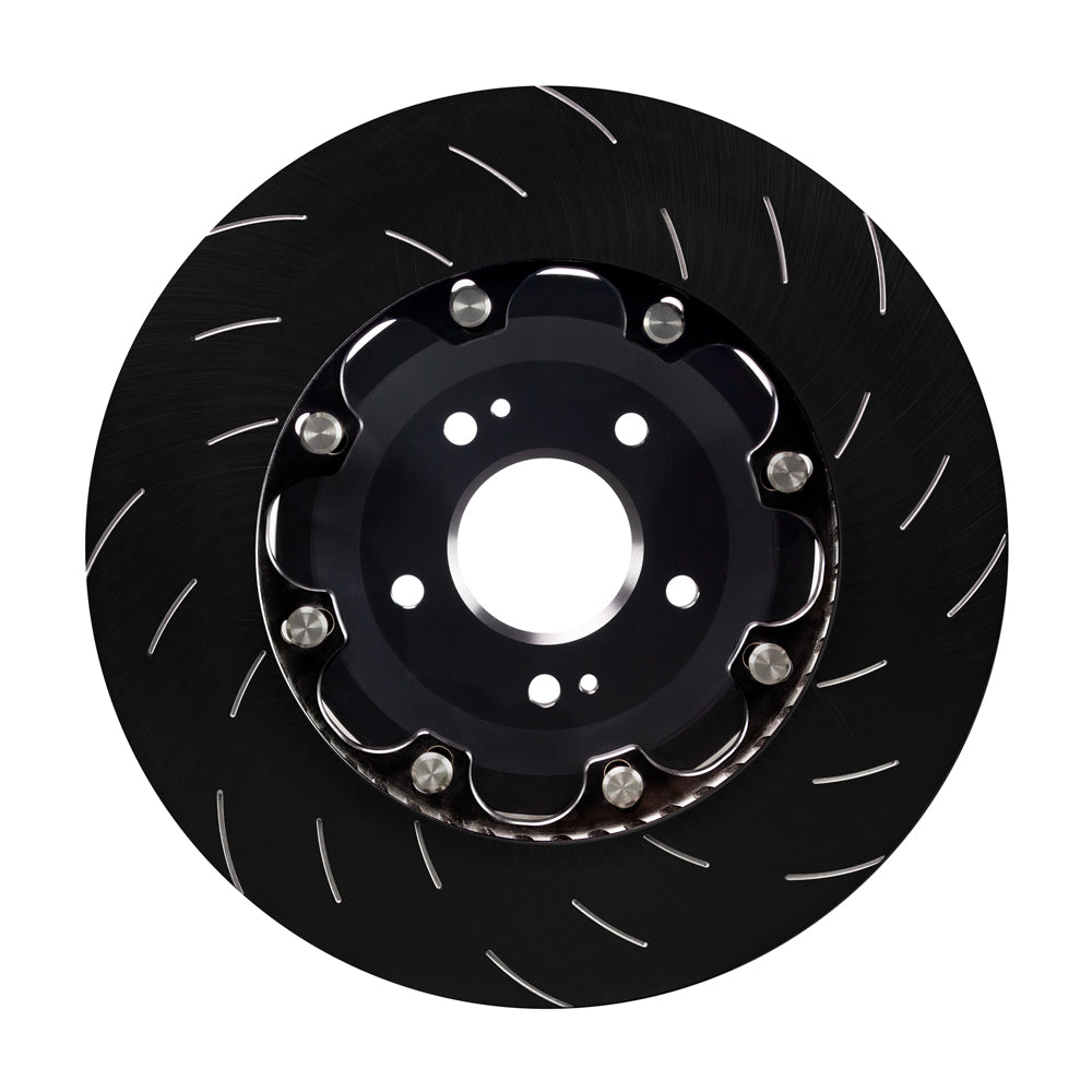 Fully floating 2-piece rotor that allows outer ring to expand freely in response to heat. This reduces stress which in turn extends rotor life and reduces the tendency for rotor cracking during extreme use.