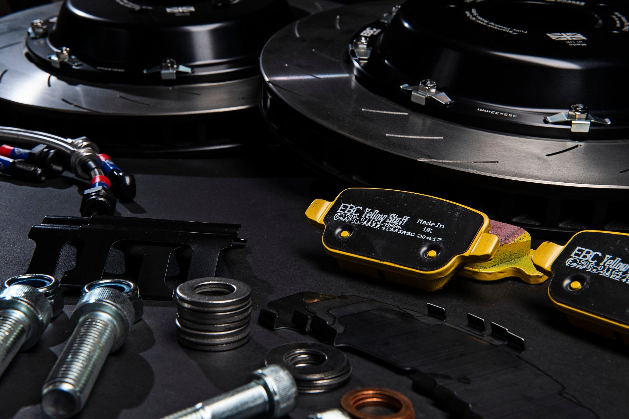 brake disc bells and caliper brackets are precision-machined from aerospace-grade billet aluminum, offering superior strength and longevity. Completing the package, each kit comes equipped with EBC’s premium Yellowstuff™ brake pads, designed for both fast street and track use.